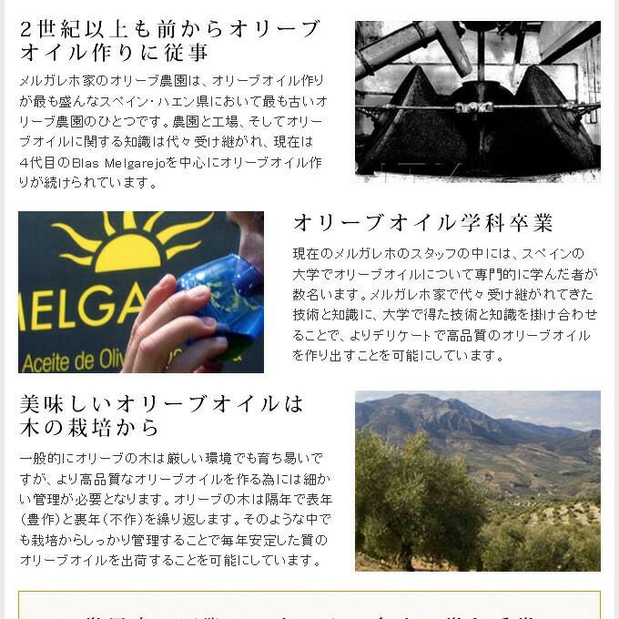 他の画像を見る 売り切れ Melgarejo メルガレホ オリーブオイル エキストラバージン ギフト 【 メルガレホ オヒブランカ 500ml melgarejo HOJIBLANCA 】 送料無料 ポイントアップ 無料ラッピング商品 ¥ 3,132 税込 詳細を見る お気に入りに登録する