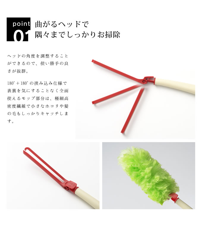 収納スタンド付きのハンディモップ。ヘッドの角度を4段階に調整することが出来ます。