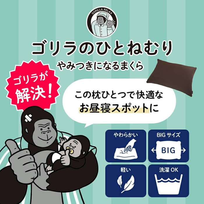 【レビューで選べる特典!】ゴリラのひとねむり まくら