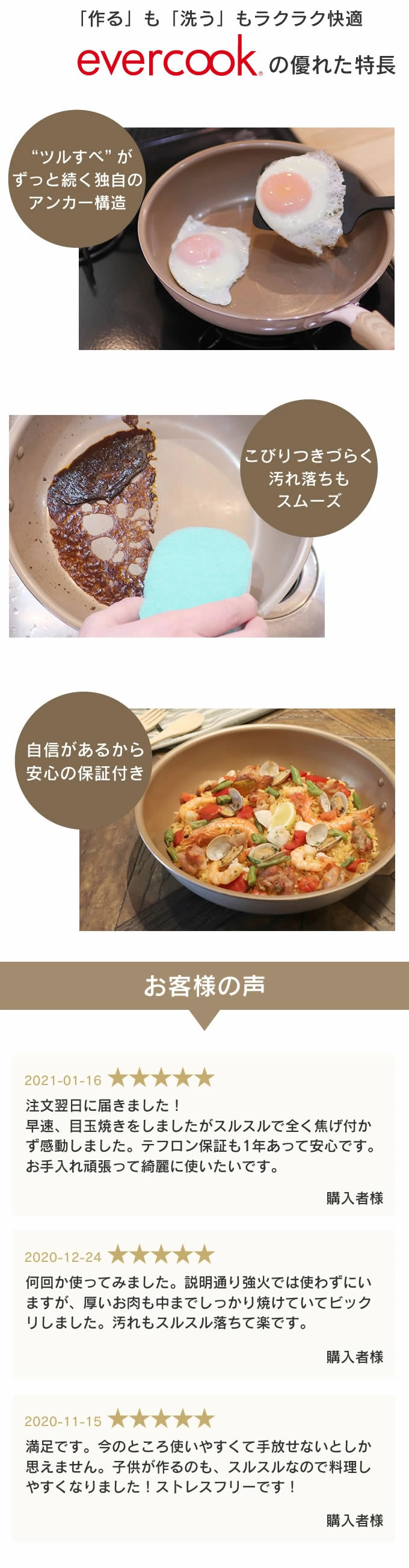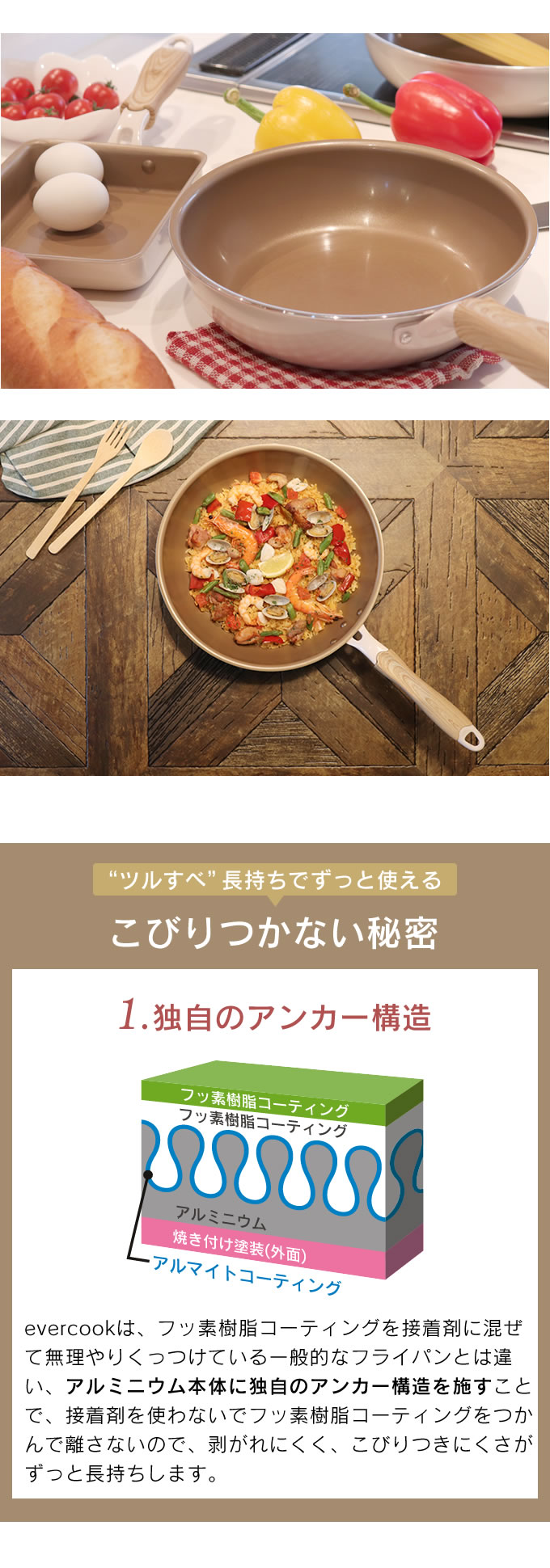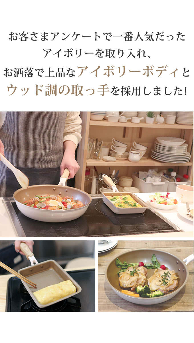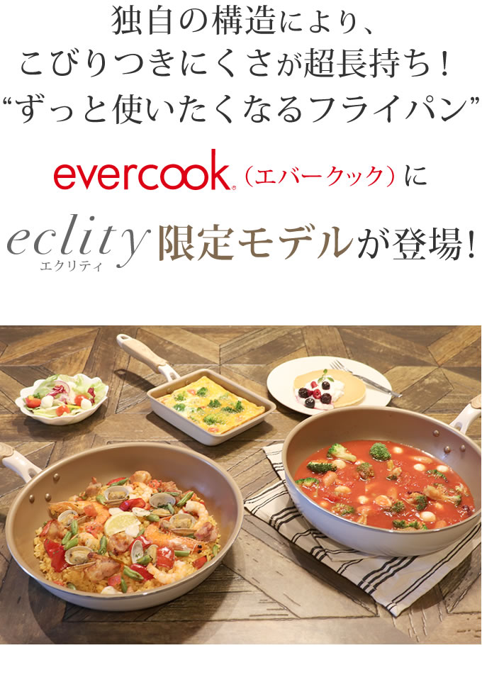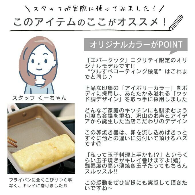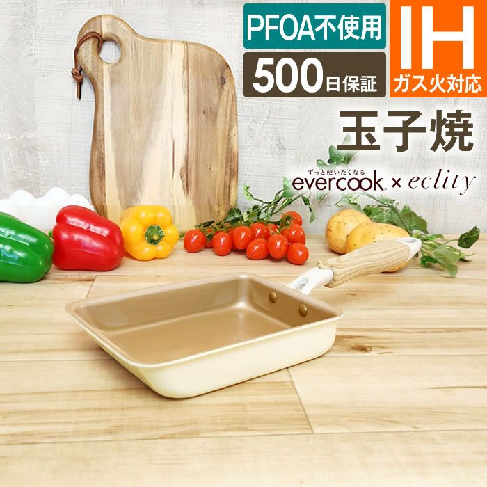 evercook エバークック フライパン 玉子焼き 13×18cm≪エクリティ限定モデル アイボリー≫ ガス・IH対応 玉子焼き器/ 500日保証 ガス火対応 卵焼き ih 焦げ付かない ドウシシャ こびりつかない PFOA不使用