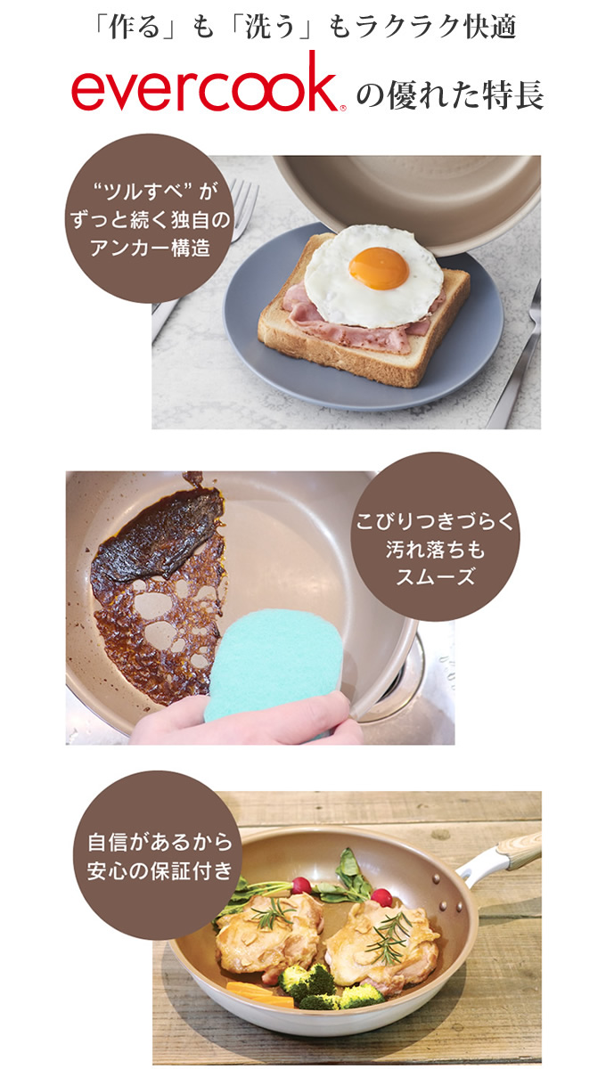 evercook エバークック ガス火専用 フライパン28cm深型 アイボリー