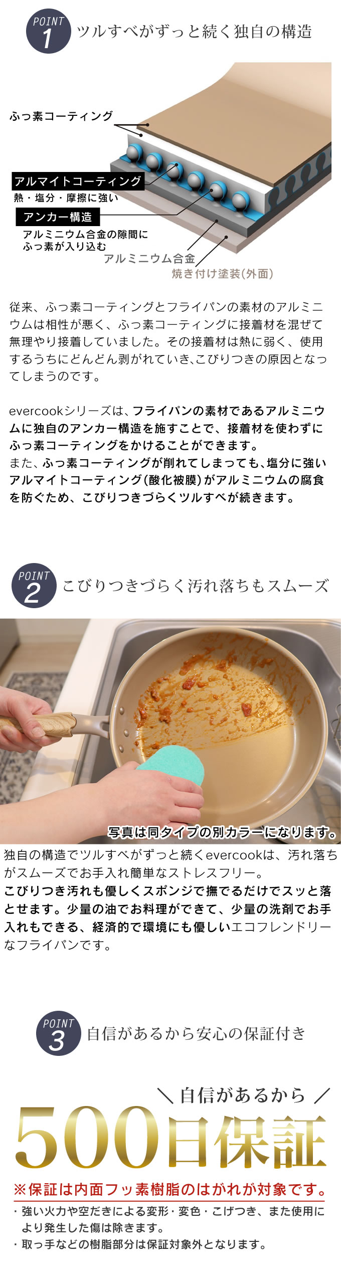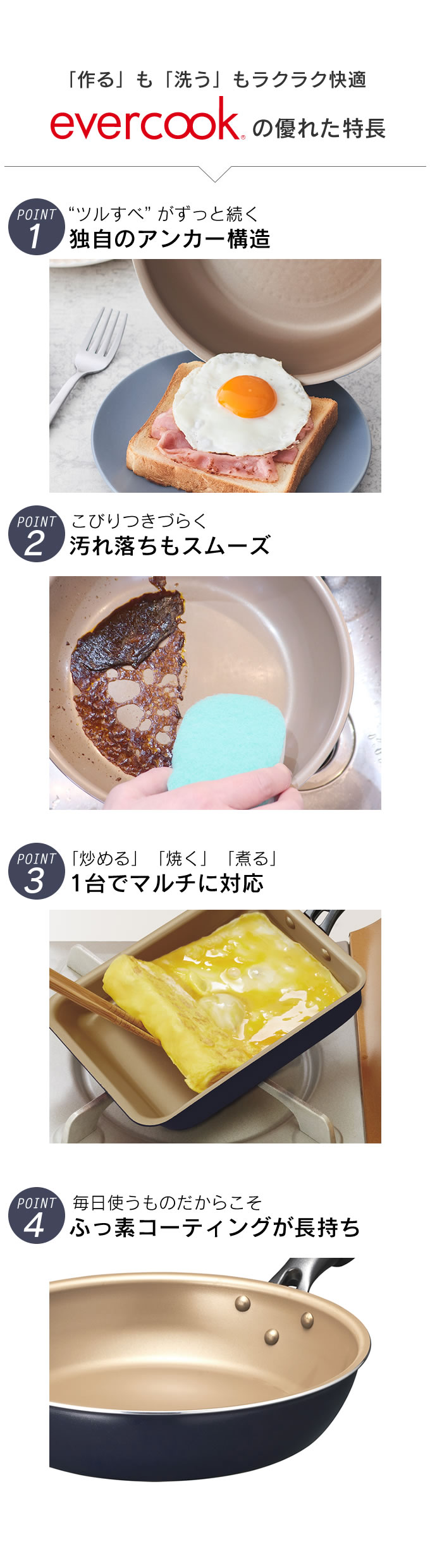 evercook エバークック ガス専用 軽量フライパン20cm ネイビー
