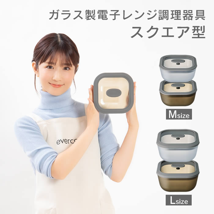 evercook エバークック ガラス製電子レンジ調理器具スクエア型Lサイズ