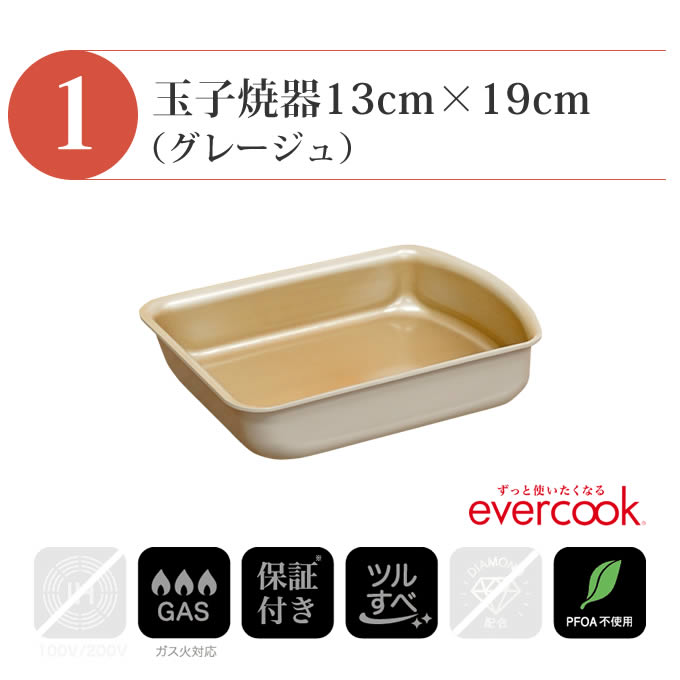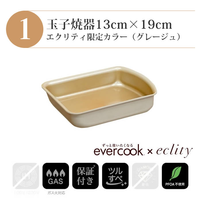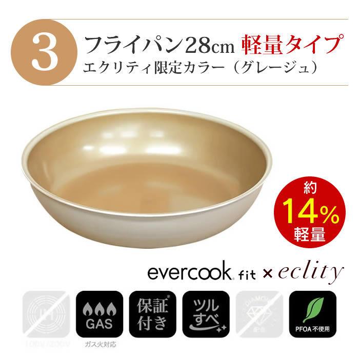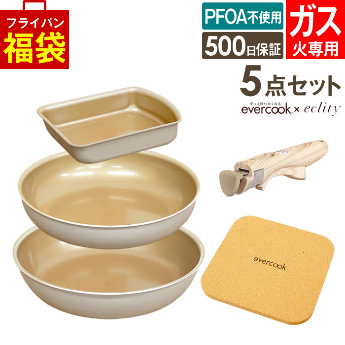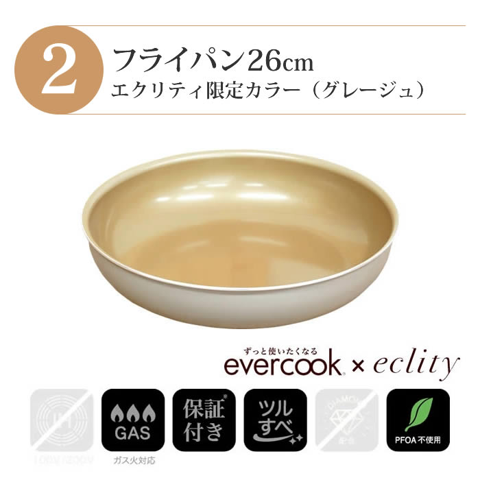 - evercook エバークック フライパン 着脱式 ガス火専用 5点セット グレージュ 玉子焼き+フライパン26cm+フライパン28cm+着脱ハンドル+鍋敷き エクリティ限定モデル