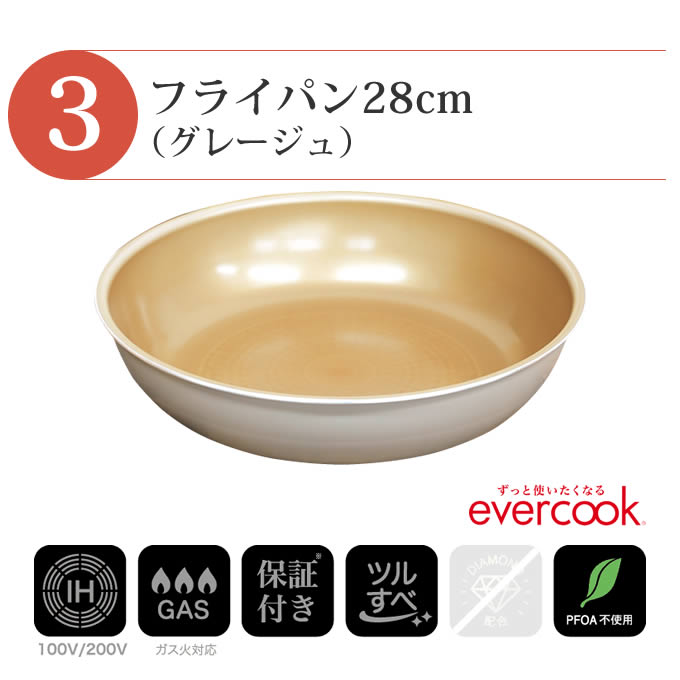 - evercook エバークック フライパン 着脱式 IH対応 5点セット グレージュ 玉子焼き+フライパン26cm+フライパン28cm+着脱ハンドル+鍋敷き エクリティ限定モデル