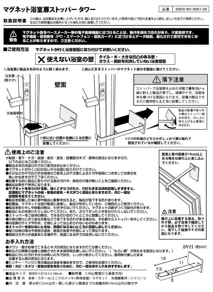tower タワー マグネット浴室扉ストッパー 5910 5911 山崎実業