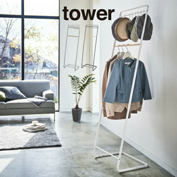 tower タワー 帽子収納フック付き コートハンガー 6129 6130 山崎実業