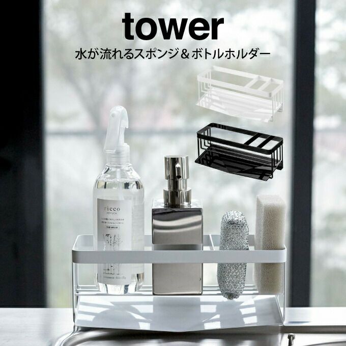 tower タワー 水が流れるスポンジ&ボトルホルダー /山崎実業