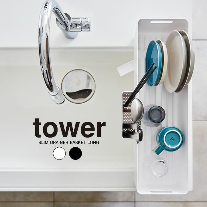 tower タワー スリム水切りバスケット ロング / 山崎実業