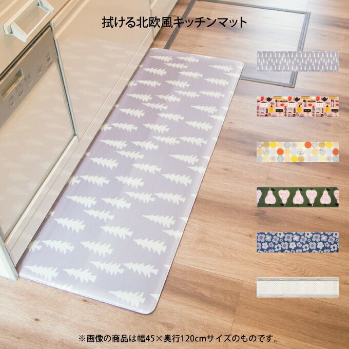 拭ける北欧風キッチンマット 45×120cm オカトー