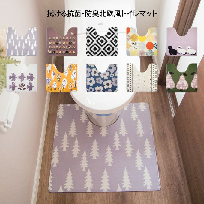拭ける抗菌・防臭北欧風トイレマット 55x60cm オカトー