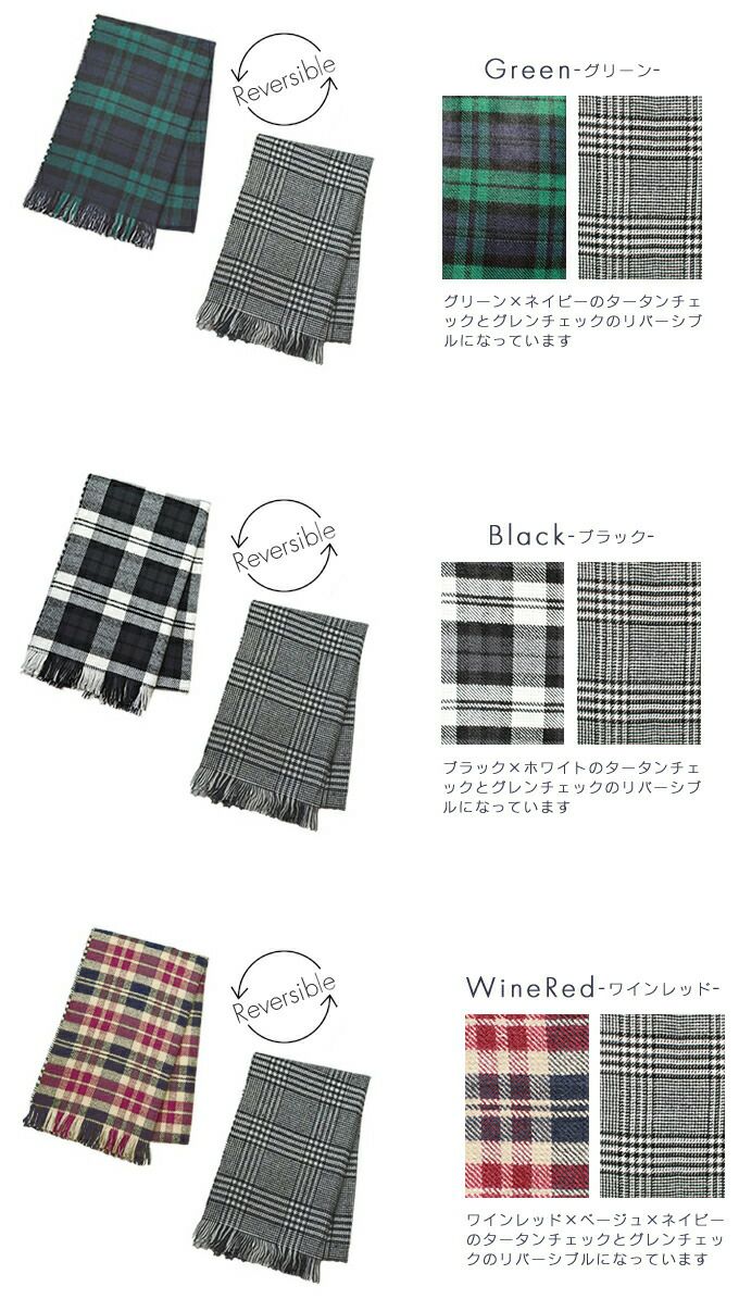 チェックリバーシブルストール マフラー ストール 大判