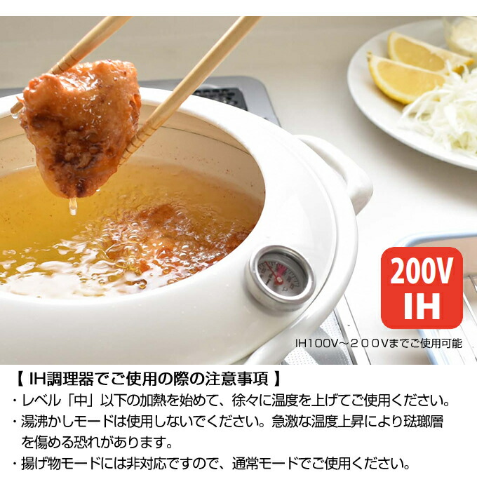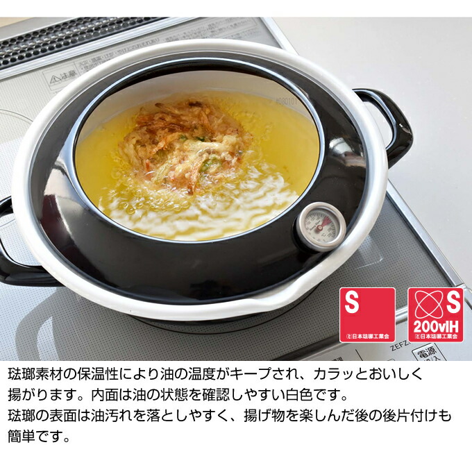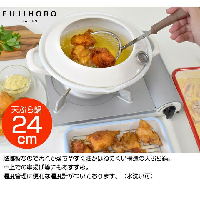 24cm天ぷら鍋 温度計付 TP-24.W TP-24.BK 富士ホーロー / IH対応 温度計付 TP-24 2.8L
