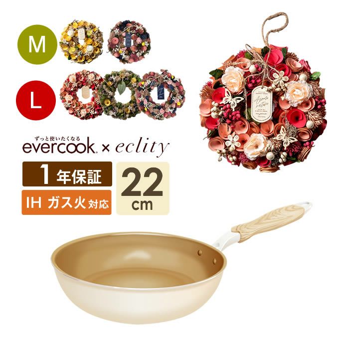 【サイズ別価格・取扱不可】リース ドライフラワー + evercook エバークック ガス・IH対応 フライパン22cm エクリティオリジナル アイボリー セット