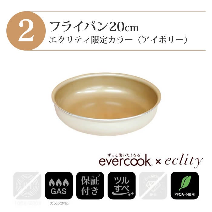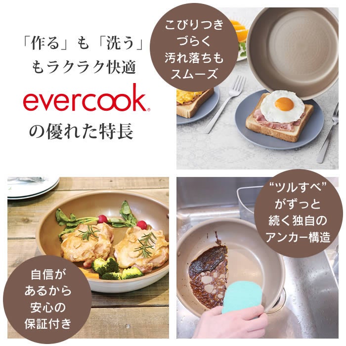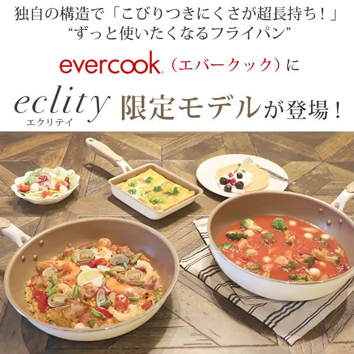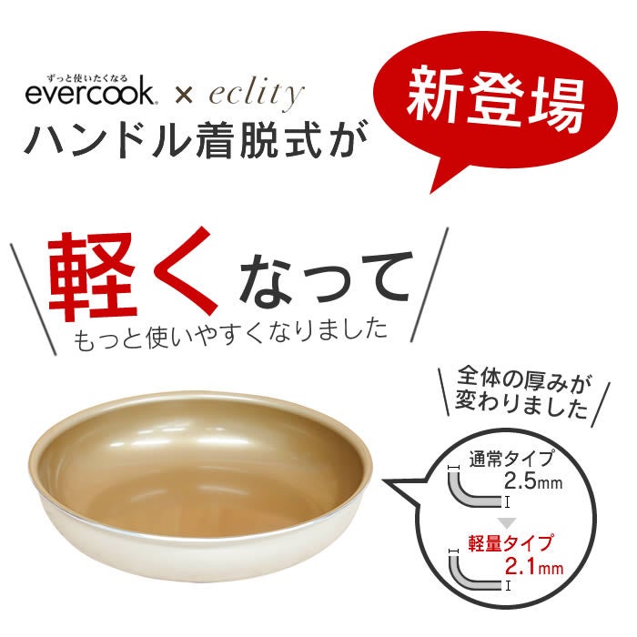 - evercook エバークック フライパン 着脱式 ガス火専用 5点セット ≪エクリティ限定モデル アイボリー≫ 玉子焼き+フライパン20cm・26cm+着脱ハンドル+鍋敷き