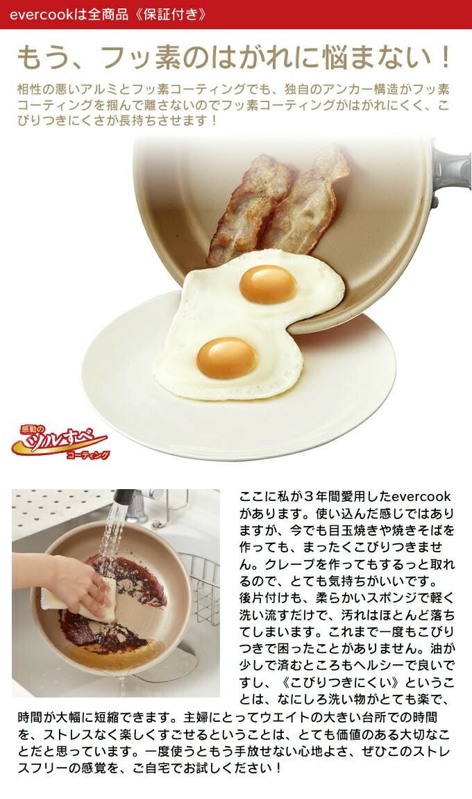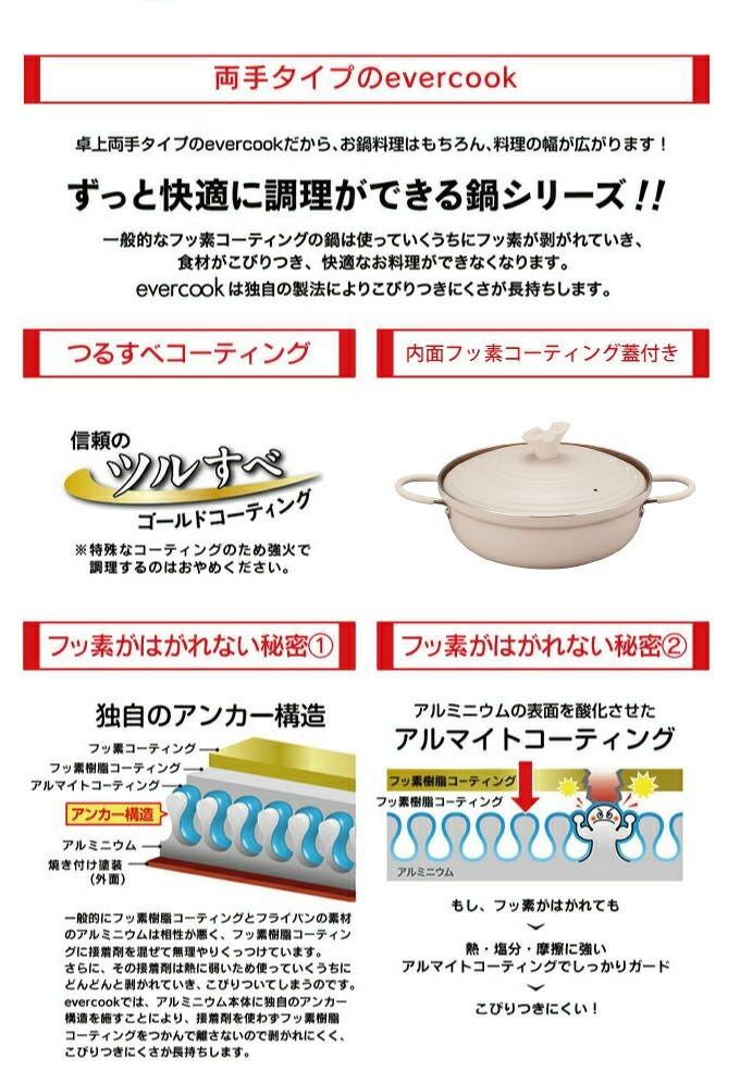【最安値】 evercook エバークック 卓上鍋24cm / 両手鍋 ガス火対応 IH対応 焦げ付きにくい フッ素コーティング ドウシシャ PFOA不使用