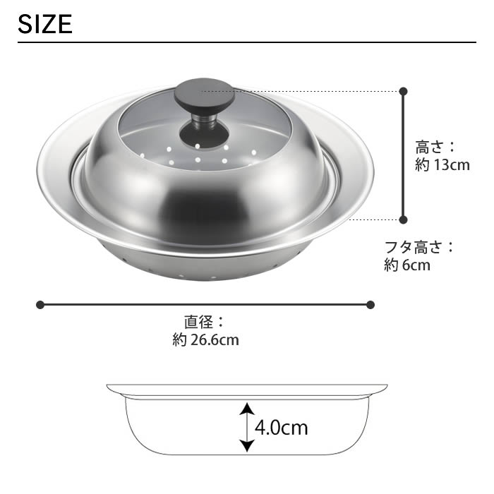 お鍋用蒸し器 20~22cm用 ガラス蓋付き 日本製