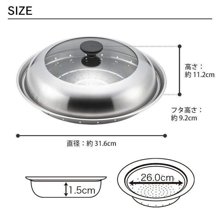 他の画像を見る フライパン用蒸し器 28~30cm用 ガラス蓋付き 日本製 ヨシカワ / 蒸し器 蒸し調理器 セイロ ガラス蓋 中が見える 日本製 ステンレス製 yoshikawa 燕三条 硝子 フタ 深型 ドーム 耐久性 フライパン用蒸し器 28~30cm用 ガラス蓋付き 日本製 送料無料 ポイントアップ ¥ 6,600 税込 詳細を見る お気に入りに登録する