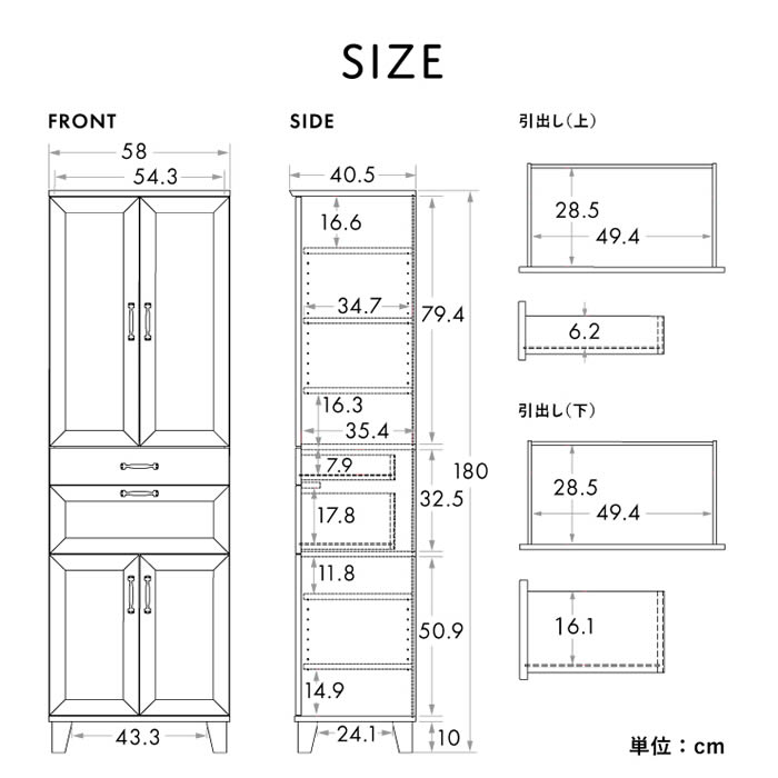 サイズ約幅58×奥行40.5×高さ180cm
