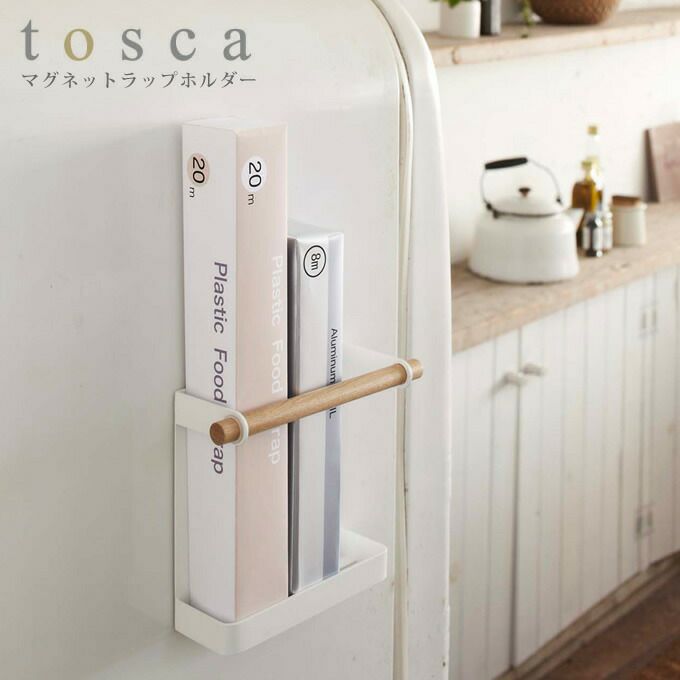 tosca トスカ マグネットラップホルダー 木製 ホワイト /山崎実業