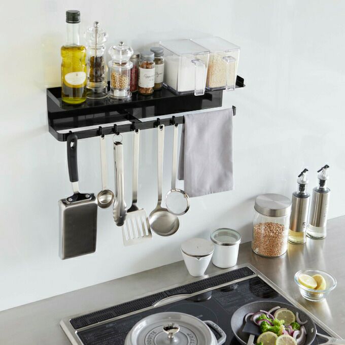 tower タワー マグネットワイドキッチンツールフック&トレー / 山崎実業