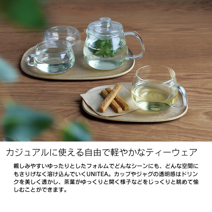 カップやジャグの透明感はドリンクを美しく透かし、茶葉がゆっくりと開く様子などをじっくりと眺めて愉しむことができます。