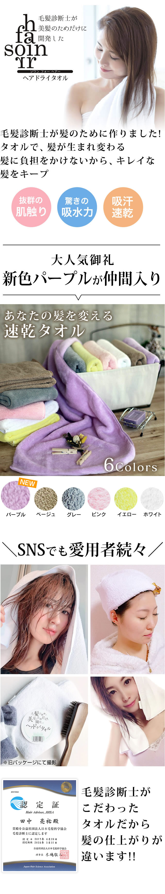 毛髪診断士が美髪のためだけに開発したヘアドライタオル soin for hair ソワンフォーヘアー