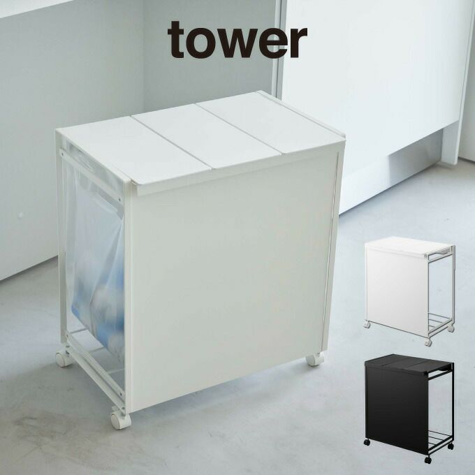 tower タワー 蓋付き目隠し分別ダストワゴン 3分別 5977 5978 / 山崎実業