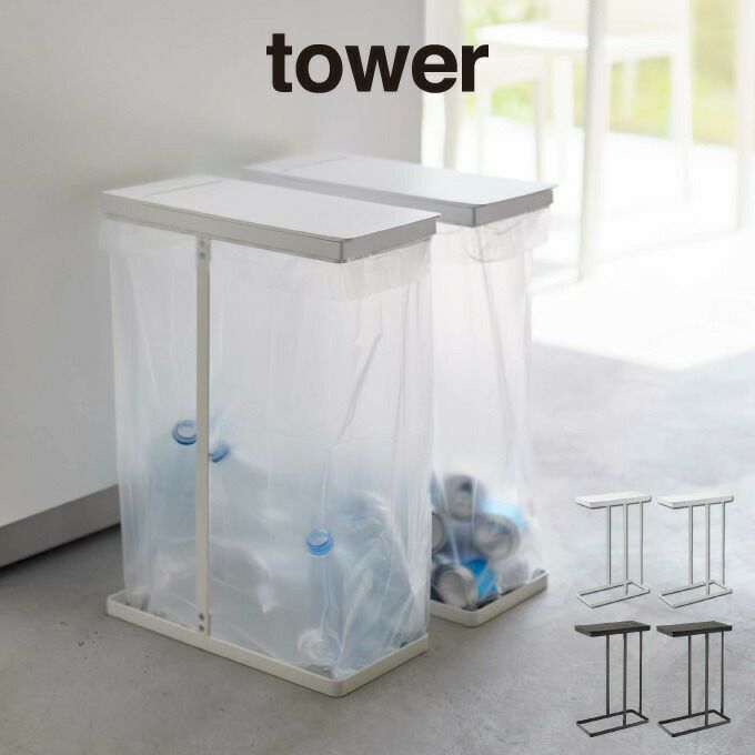 tower タワー レジ袋3連&45Lゴミ袋スタンド 5714 5715 / 山崎実業