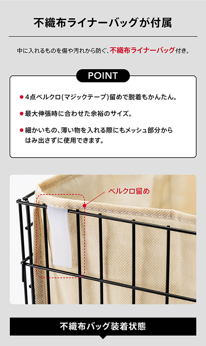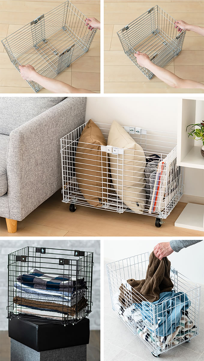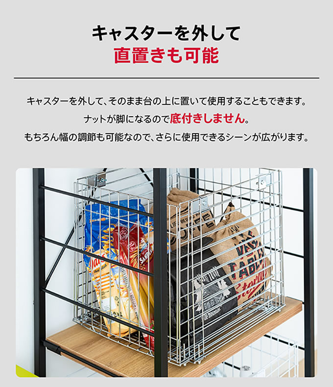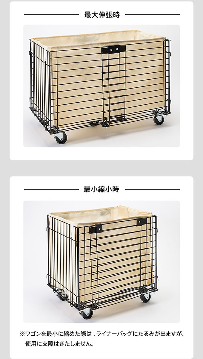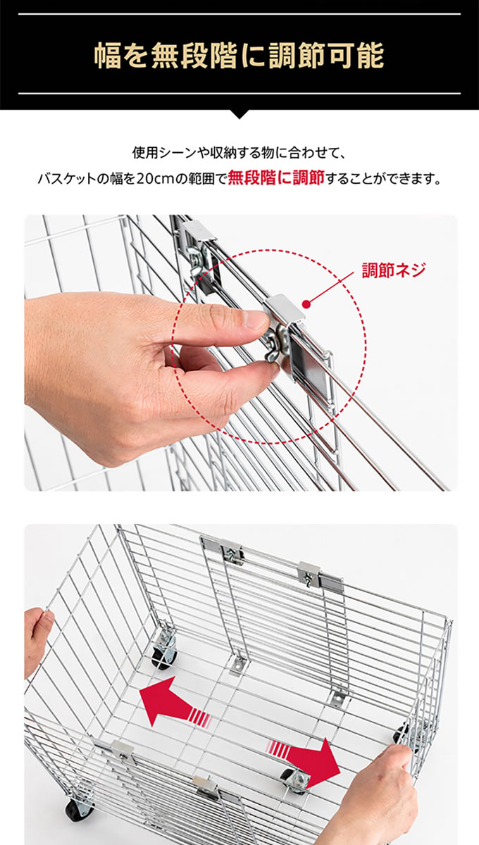 キャスター付き伸縮ワイヤーバスケット