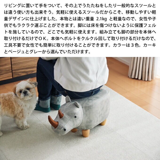 アニマルモチーフのスツール Rhino Jr. リノジュニア サイ