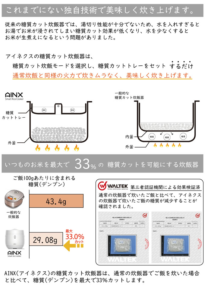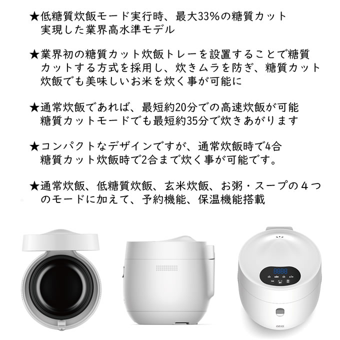 AINX Smart Rice Cooker 糖質カット炊飯器