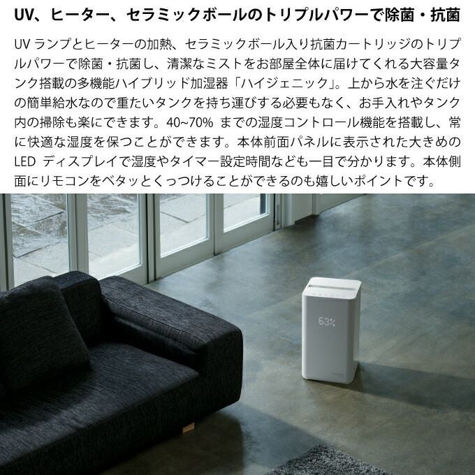 THREEUP スリーアップ 上部給水式 ハイブリッド加湿器 ハイジェニック リモコン付 ホワイト HB-T2141WH