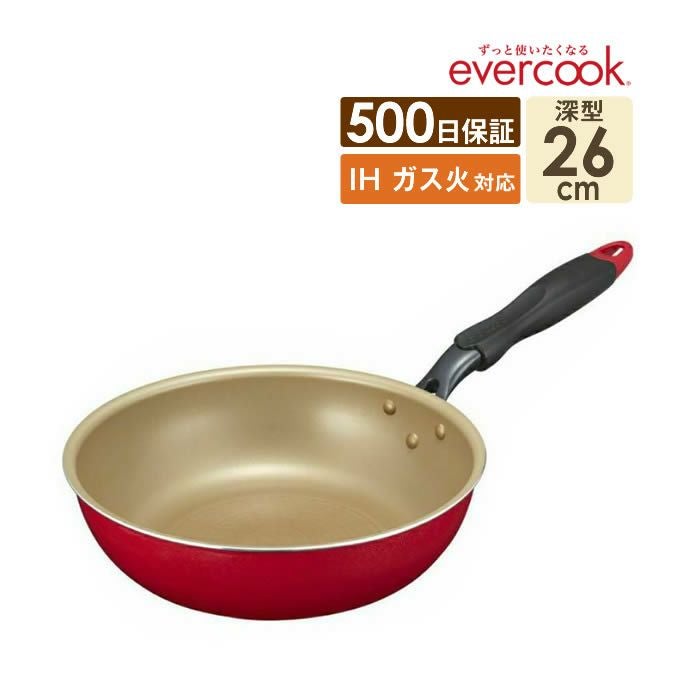 evercook エバークック IHフライパン26cm深型 レッド