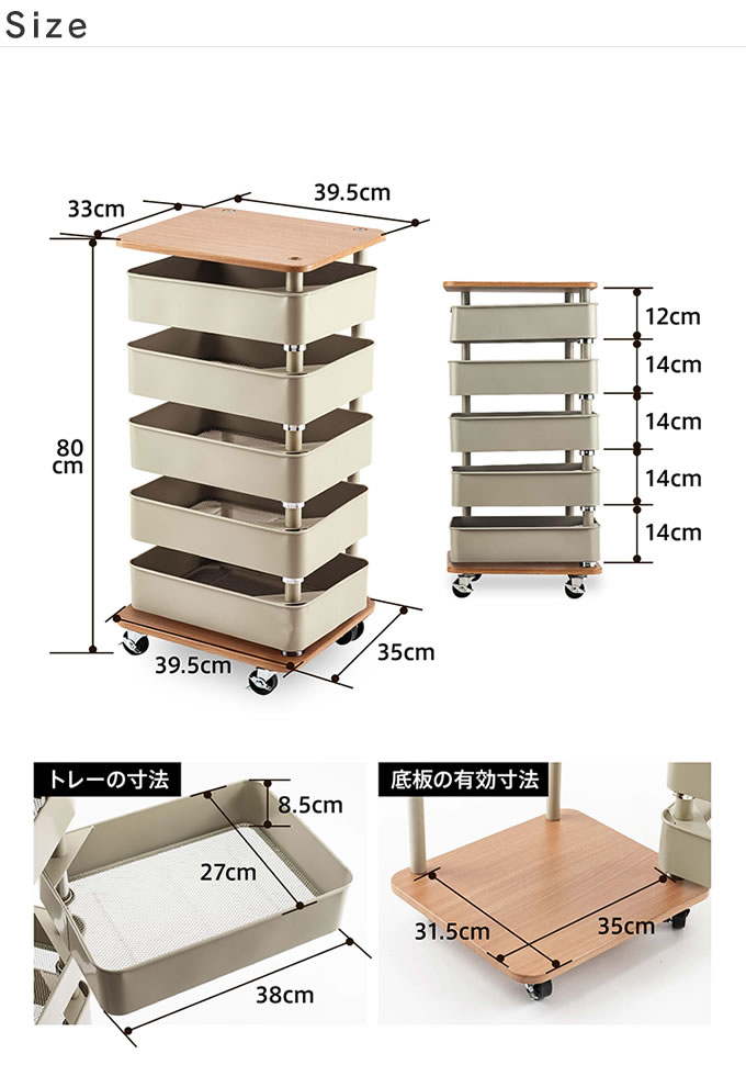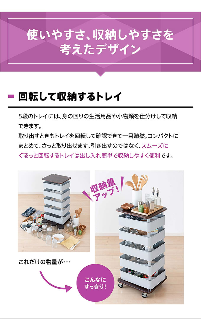 商品名回転トレイワゴン5段