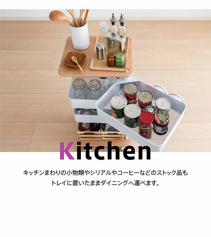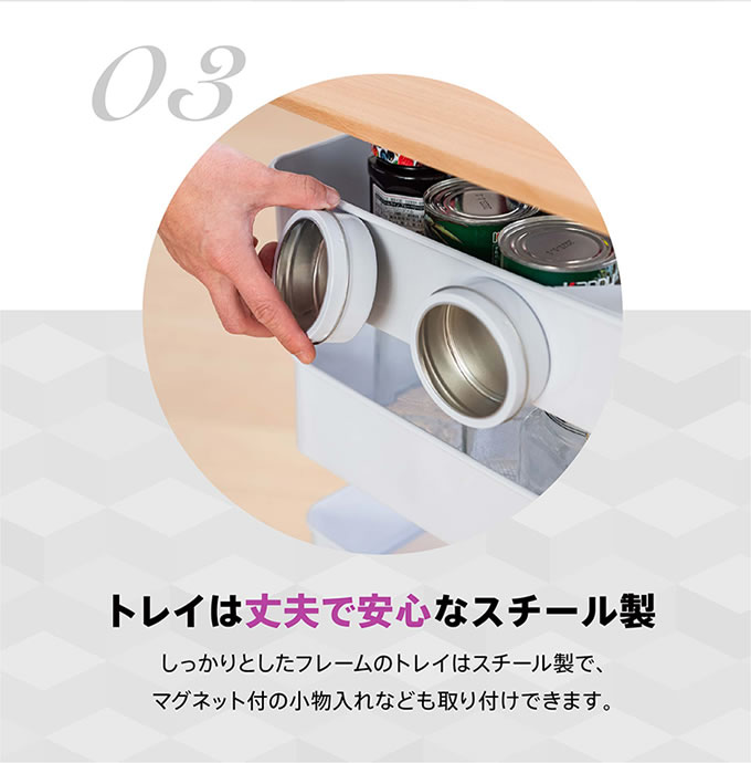 ポイント回転式のトレイでものの出し入れが煩わしくない。