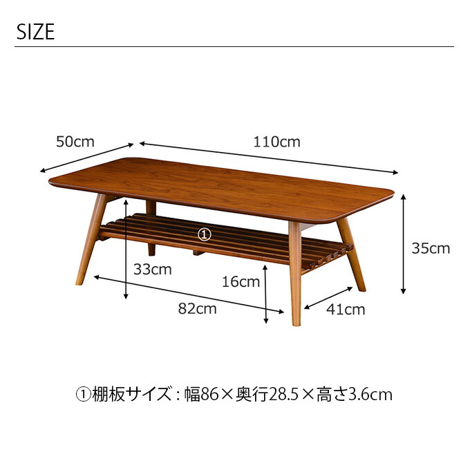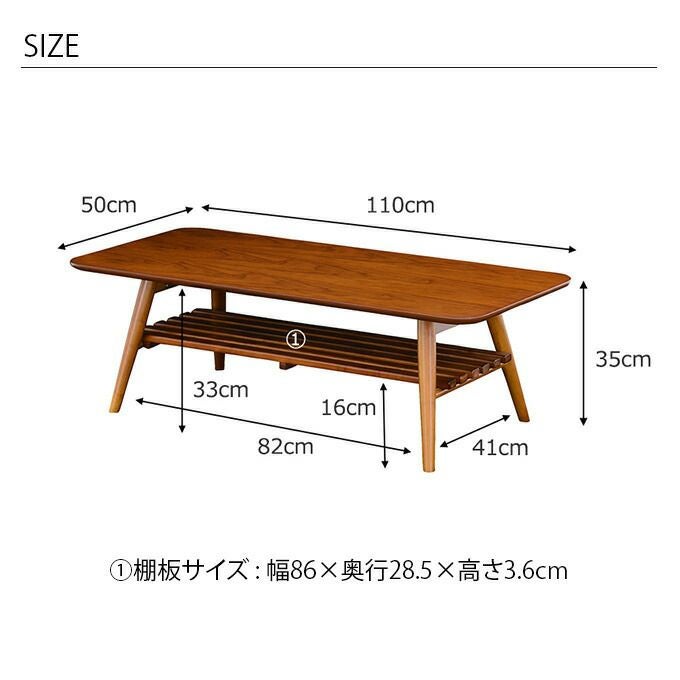 商品名Sereno 折り畳み式ローテーブル 棚付き・110cm幅 セレノ