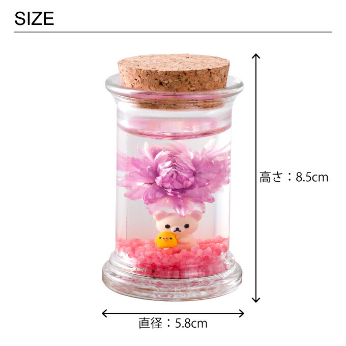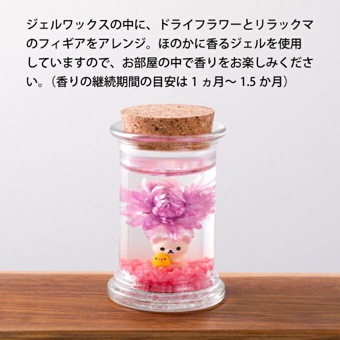 ポイントジェルワックスの中に、ドライフラワーとリラックマのフィギアをアレンジ。