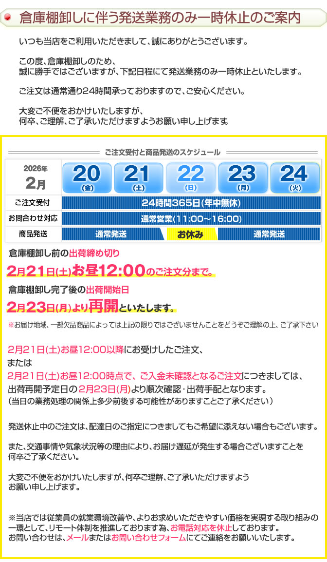 土日祝も毎日営業※2/22(日)発送業務のみ休止