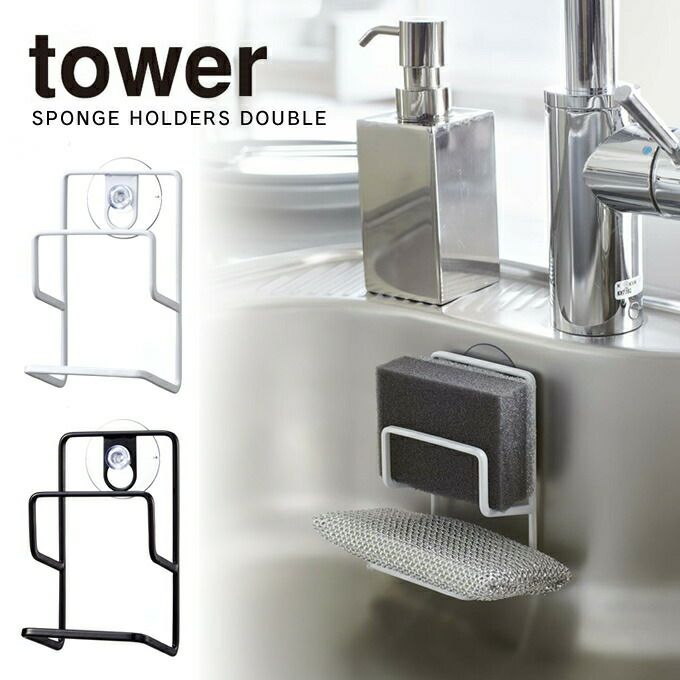 tower タワー スポンジホルダー ダブル 吸盤 / 山崎実業